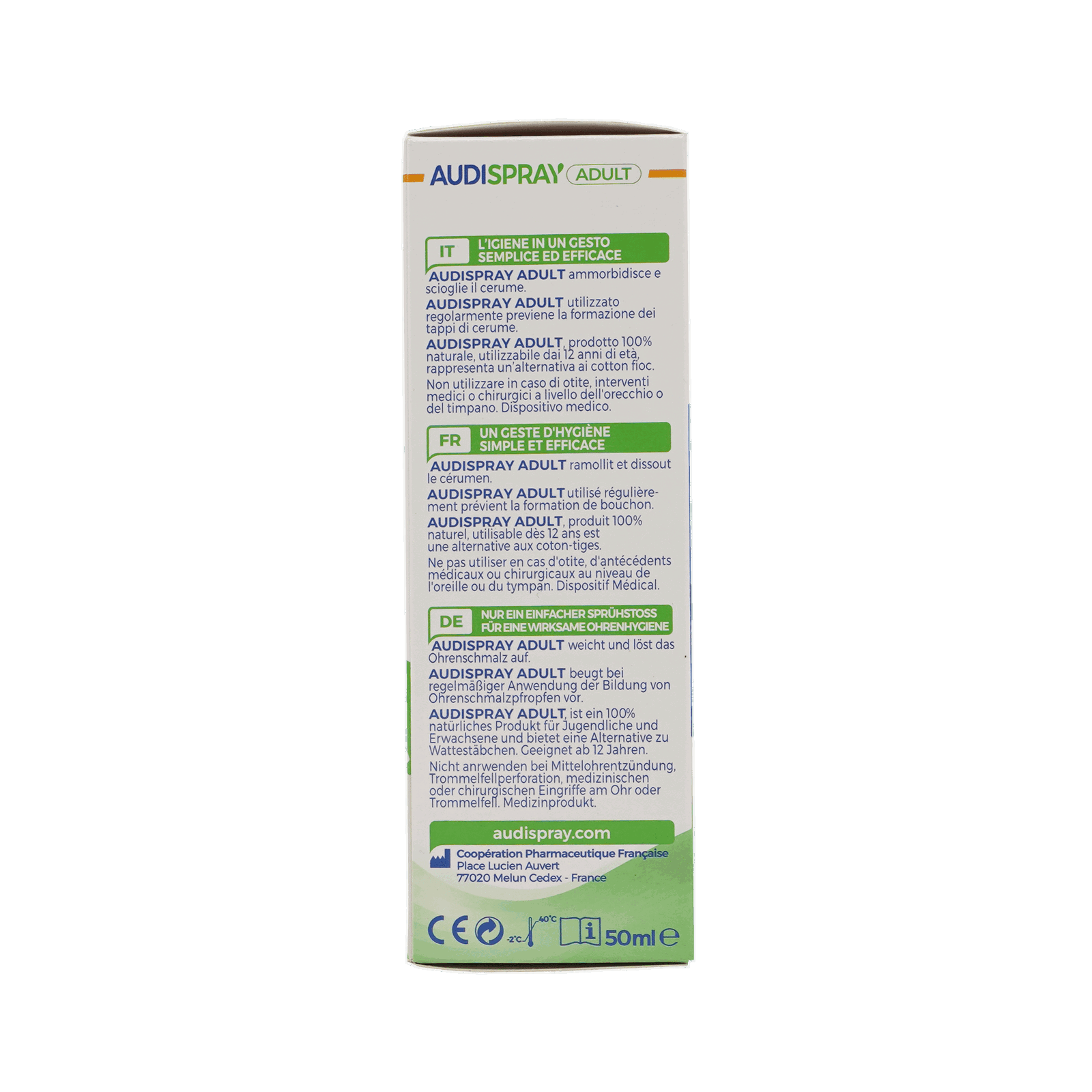 AUDISPRAY ADULT ist ein Ohrenhygieneprodukt, das speziell entwickelt wurde, um die Bildung von Ohrenschmalzpfropfen zu verhindern und die regelmäßige Ohrenreinigung auf sanfte Weise zu unterstützen.