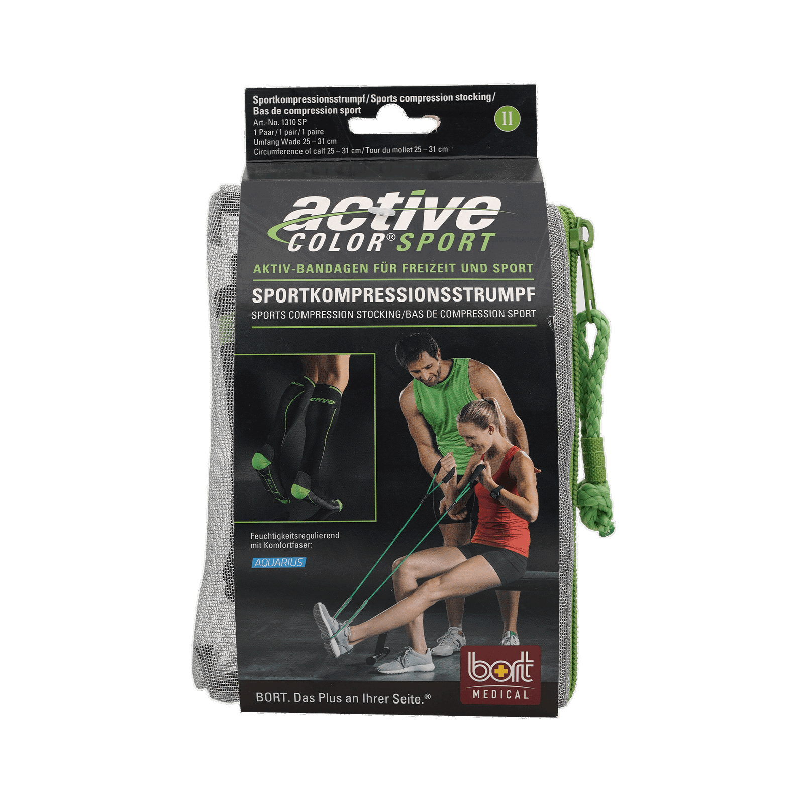BORT ActiveColor Sport – Kompressionsstrumpf Gr.2 schwarz/grün