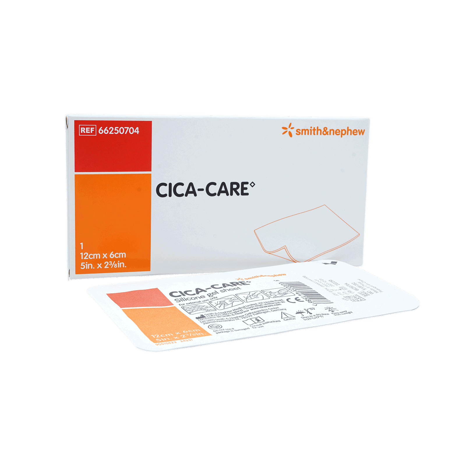 CICA-CARE ist ein selbsthaftender Verband aus Silikongel, der in klinischen Studien in bis zu 90 Prozent der Fälle eine deutliche Verbesserung von geröteten und erhabenen Narben zeigte.
